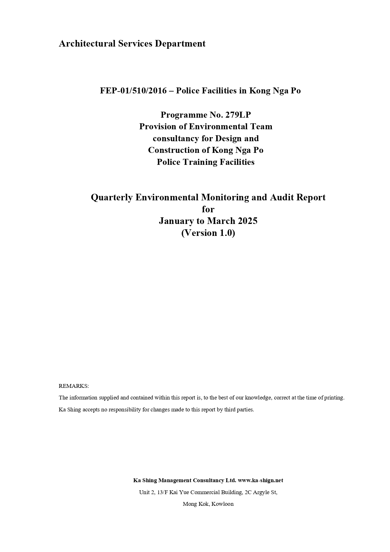 Quarterly EM&A Report presents the EM&A work undertaken from January to March 2025 in accordance