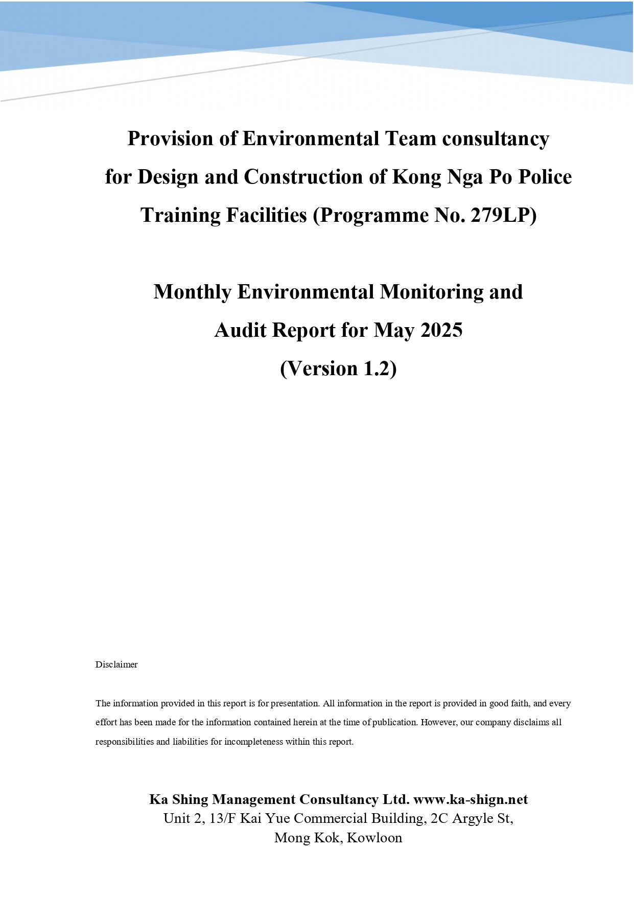 Monthly EM&A Report details the environmental monitoring and audit