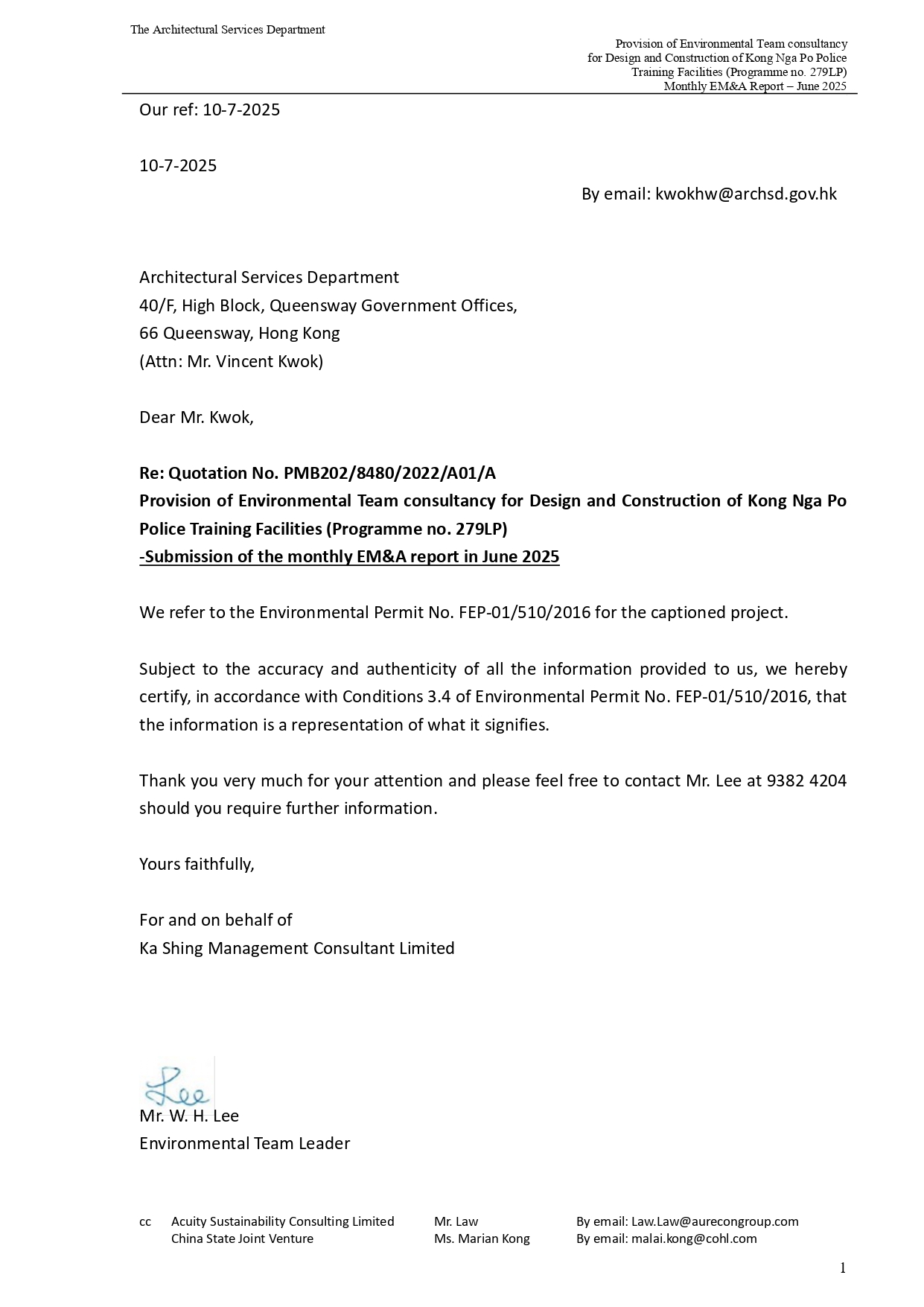 (EM&A) program. All environmental obligations are fulfilled, and the
